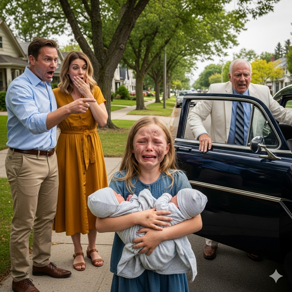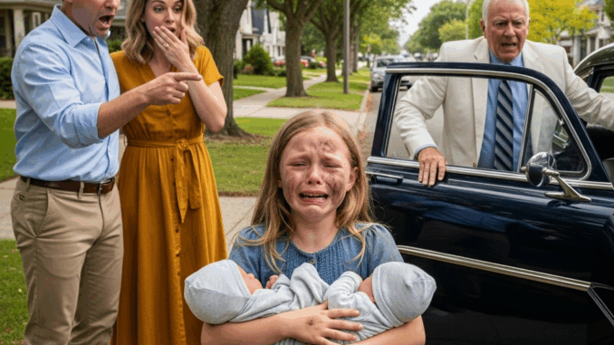 Una niña de 8 años fue arrastrada a la calle por sus tíos, quienes la regañaron y la echaron de casa simplemente porque les había añadido una cucharada de leche de más a sus hermanos gemelos de 6 meses, que estaban ardiendo de fiebre. La pequeña los abrazó con fuerza mientras sus pies descalzos temblaban sobre el pavimento. De repente, un coche de lujo se detuvo. Un hombre bajó y, con una sola frase, cambió el destino de los tres niños para siempre.