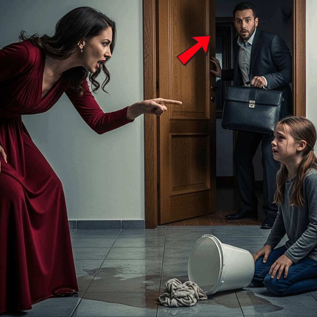 Pero en su torpeza infantil, el cubo resbaló. El impacto resonó por toda la casa. Sophie, intentando evitar el desastre, golpeó con fuerza la mano contra el borde metálico. Un dolor agudo le recorrió el brazo y, entre sollozos, profirió su desgarradora súplica: