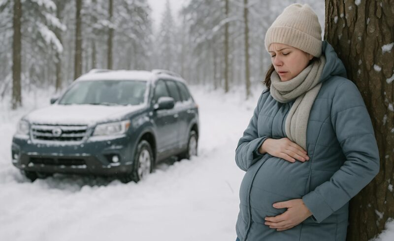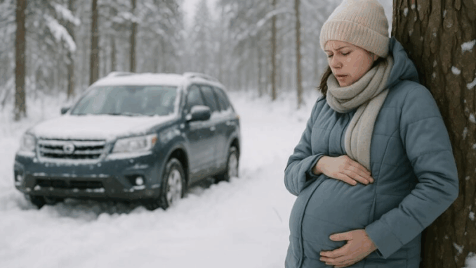 Mary se dio cuenta: si se quedaba en el coche, se congelaría. Su teléfono no tenía señal. Desesperada, salió, esperando que pasara algún conductor o equipo de rescate. Pero el camino forestal estaba desierto. Apenas podía mantenerse en pie, le dolía mucho la barriga y el bebé estaba inquieto.