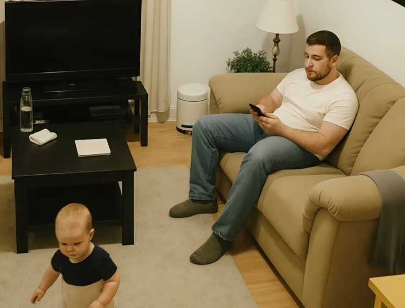 Al principio, mi esposo estaba sentado en el sofá, pegado al teléfono, mientras nuestro hijo deambulaba por la habitación intentando llamar su atención. Extendía sus manitas y le mostraba juguetes, pero mi esposo lo ignoraba con irritación.