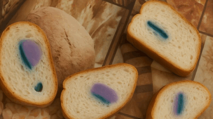 En casa, corté el pan para ponerlo en la mesa. Sin embargo, noté algo extraño en el interior . Al principio, pensé que podría ser moho o un defecto en la masa. Pero el color era inusual —verde amarillento— y la masa se sentía suave y no parecía pan en absoluto
