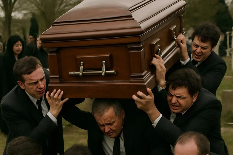 Cuando llegó el momento de bajar el ataúd a la tumba, los hombres se acercaron, agarraron las asas y, de repente…