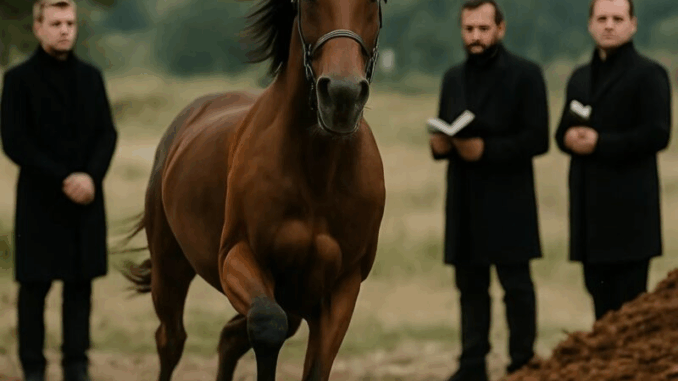 Durante el funeral, un caballo emergió repentinamente del bosque y corrió directo hacia el ataúd: los asistentes quedaron en shock cuando descubrieron por qué el animal hizo esto.