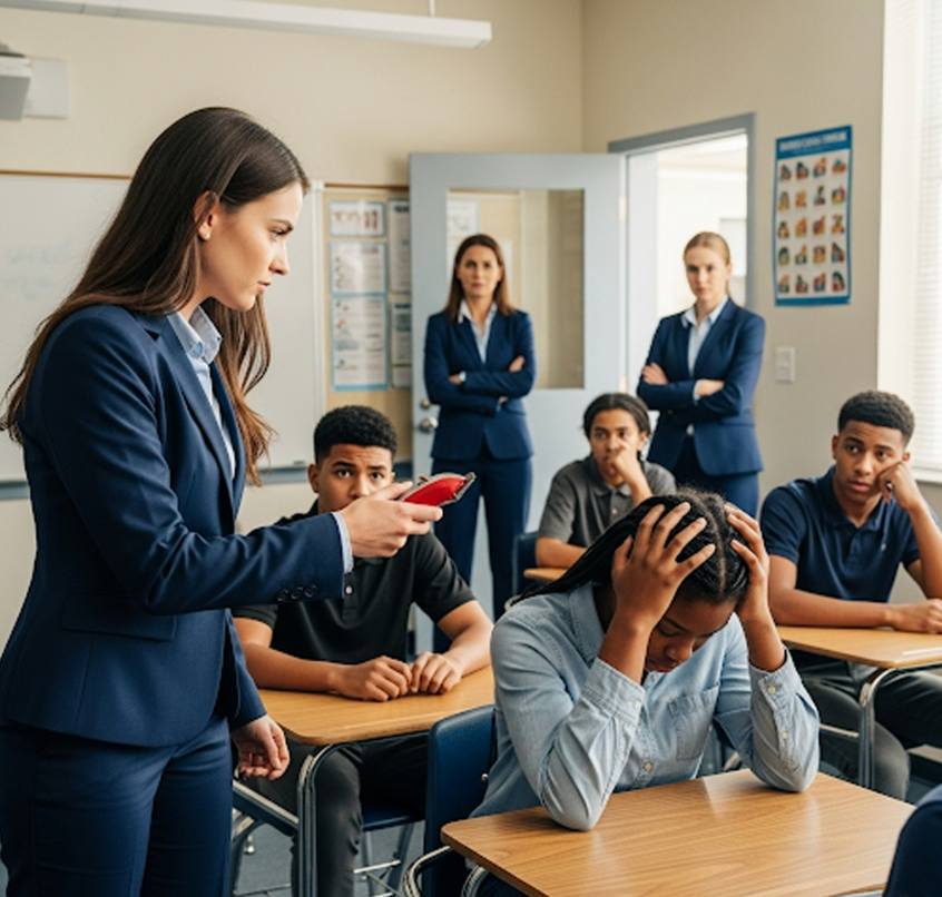 El subdirector, el Sr. Davis, notó la tensión y tomó a la Sra. Whitman aparte. “¿Qué pasó hoy en tu clase?”, preguntó.