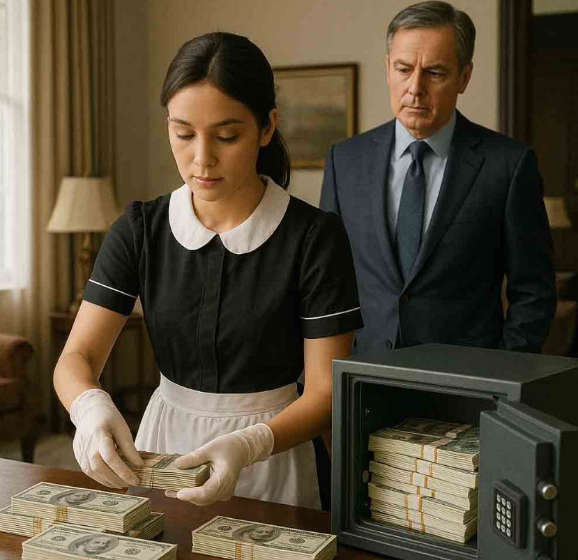 Clara dudó. «Quizás se le olvidó», murmuró para sí misma. Lentamente, se acercó a la caja fuerte; no con avidez, sino con cuidado, como si temiera incluso respirar demasiado cerca. Miró los fajos de dinero y susurró: «Esto podría arreglarlo todo».