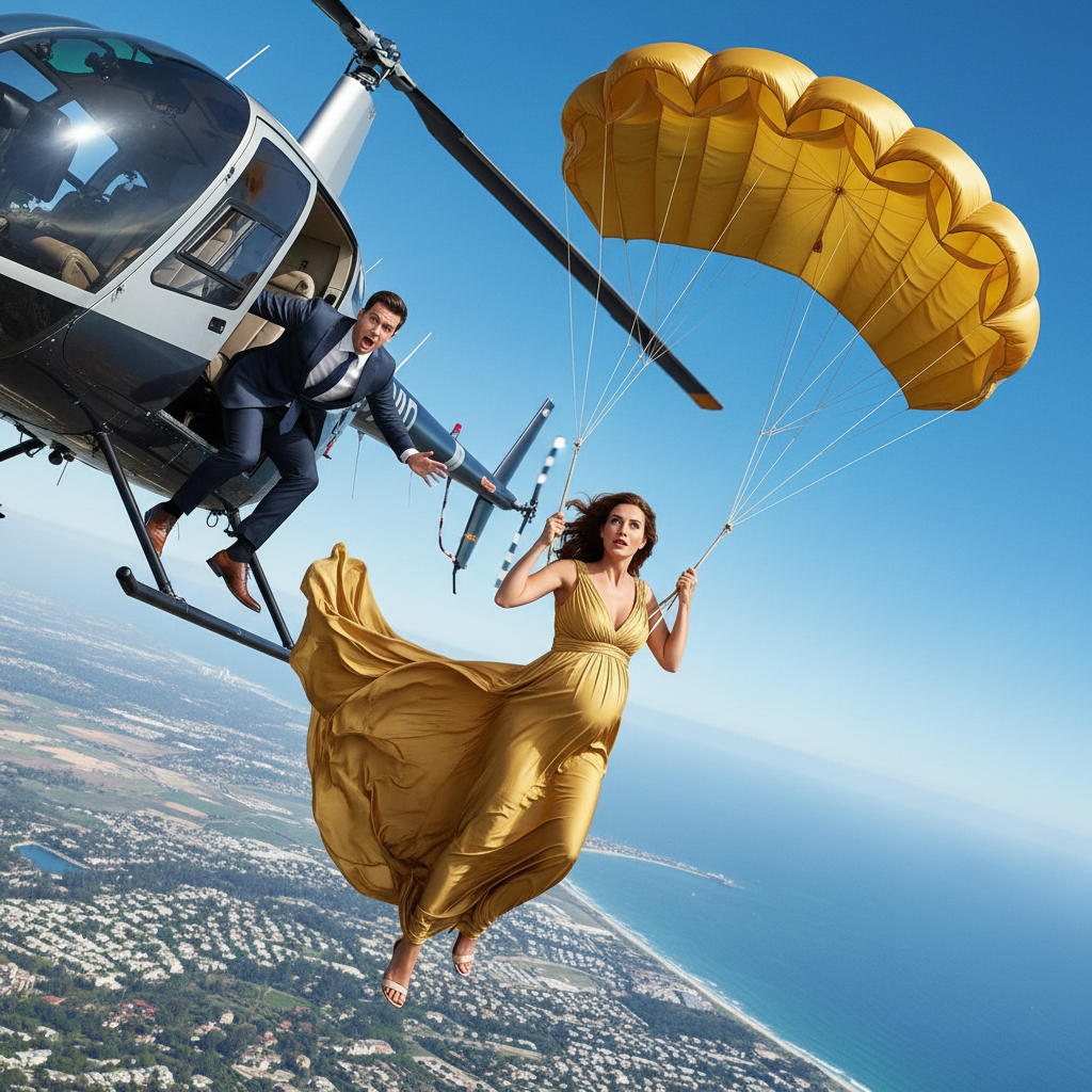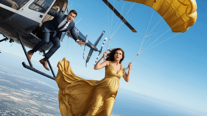 Mientras el viento silbaba a su alrededor, Amelia buscó a su espalda y encontró el paracaídas escondido bajo su abrigo. Se ajustó rápidamente el arnés, rezando por tener tiempo suficiente. El helicóptero ya era un punto lejano, y el mundo abajo parecía estar a años de distancia.