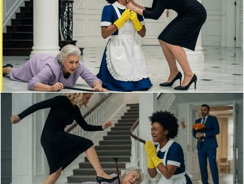 Maya, aún arrodillada, se apartó lentamente, pero Clara no le soltó la mano. El gesto lo decía todo: la anciana confiaba más en la criada que en la prometida de su propio hijo.