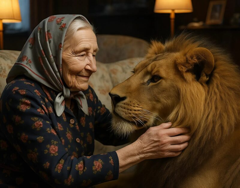 Pero para entonces, la abuela ya no podía despreocuparse de él. El león se había convertido en su amigo, su consuelo en la soledad. La abuela no tenía familia, y esta criatura se había convertido en el sentido de su vida. Escondió al animal salvaje de los vecinos, cerrando las cortinas y saliendo rara vez.