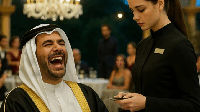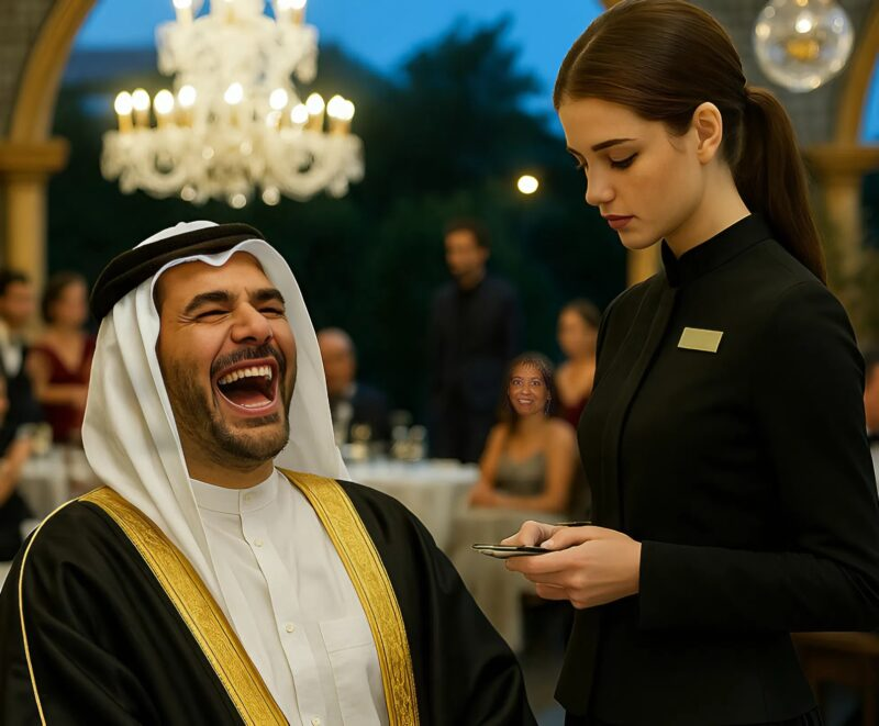 Al terminar la cena, el jeque dejó una generosa propina sobre la mesa. Pero no se detuvo ahí: se levantó, rodeó la mesa y se acercó personalmente a la camarera.