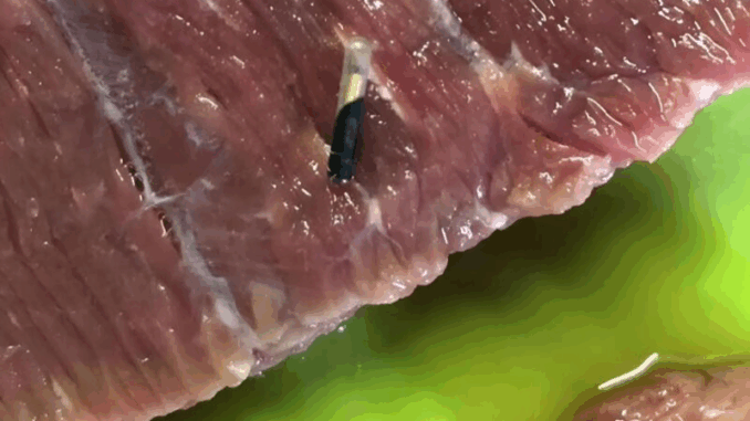 Normalmente, deberían retirarlos antes de vender la carne. Cómo llegó un trozo de ese aparato a la carne que compré sigue siendo un misterio.
