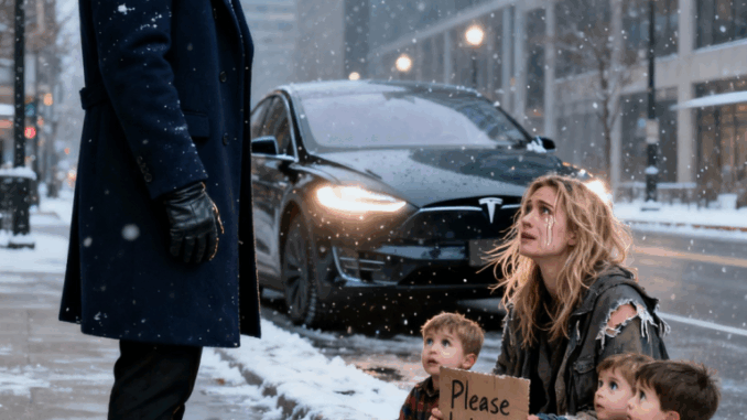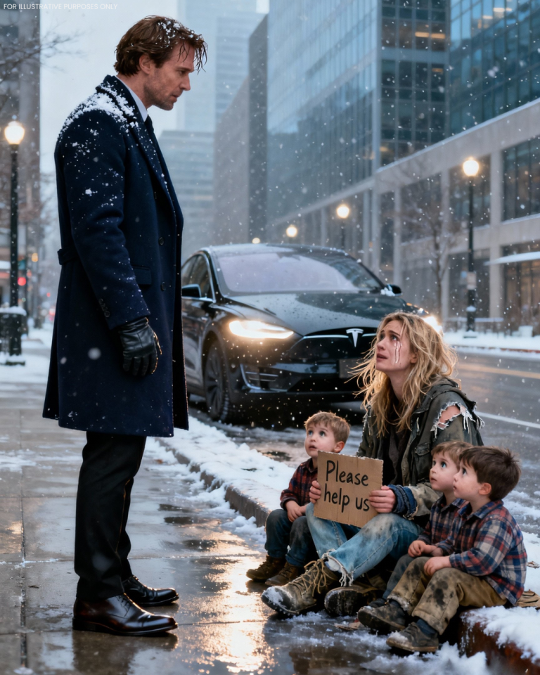 Cerca de la acera, envuelta en una manta delgada, estaba sentada una mujer con tres niños pequeños apretujados contra ella para calentarse. La mujer sostenía un cartel de cartón que decía: Por favor, ayúdennos. Cualquier ayuda es bienvenida. La escena en sí era desgarradora, pero lo que congeló a Liam por completo fue su rostro.