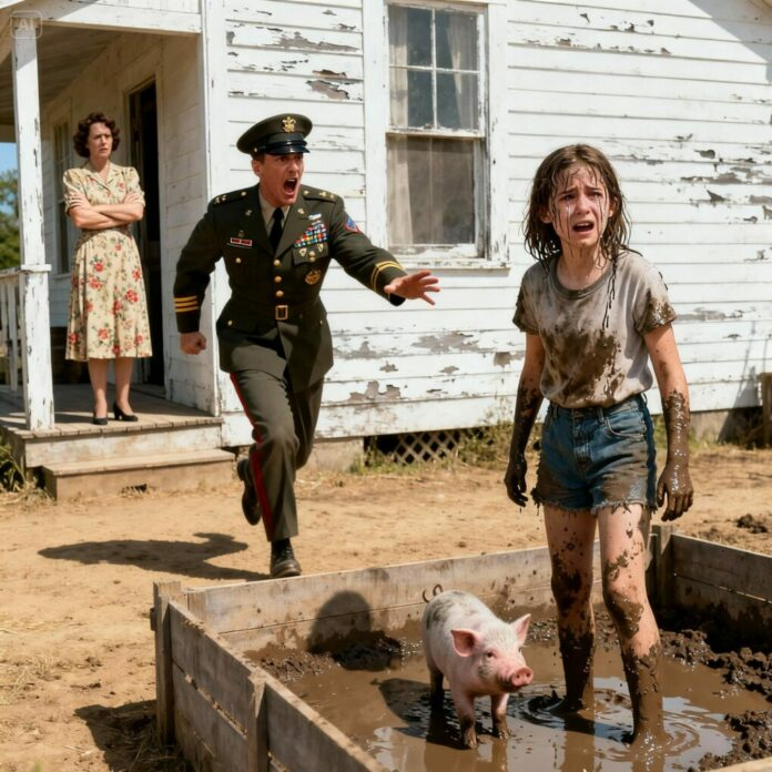 En la pocilga , descalza y cubierta de barro, estaba Emily . Tenía el pelo enmarañado, el rostro pálido y la ropa hecha jirones, demasiado fina para el frío. Le temblaban las manitas mientras echaba pienso en el comedero.