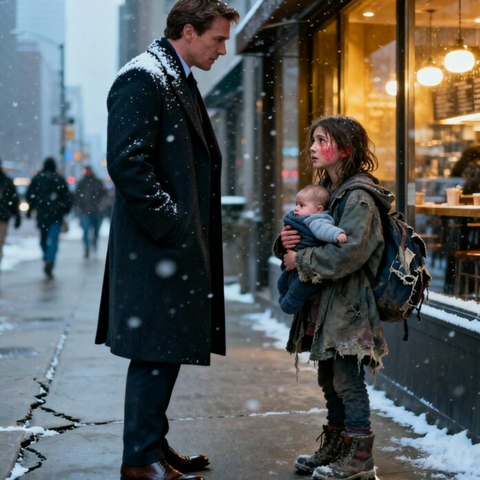—Se giró. Una niña delgada, de unos diez años, temblaba en la acera. Sus zapatos estaban gastados y su abrigo, demasiado grande y con las mangas deshilachadas. En brazos sostenía a un bebé envuelto en una manta. —Mi hermano tiene hambre. Solo una caja de leche. Se lo pagaré cuando sea mayor.