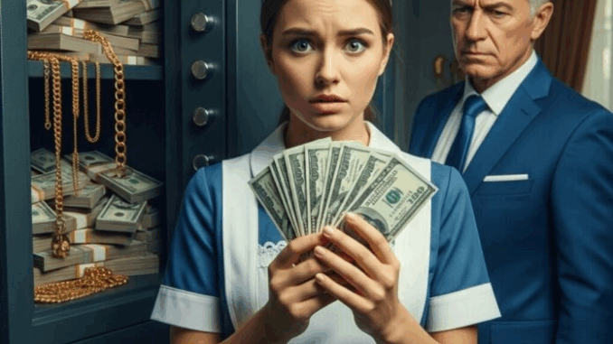 En vez de eso, Camila tomó un paño. No tocó el dinero. Simplemente limpió el polvo del borde metálico de la puerta de la caja fuerte, con movimientos lentos y cuidadosos. Luego, hizo algo inesperado: sacó una pequeña fotografía del bolsillo, la miró fijamente un instante y le dio un suave beso.