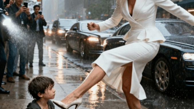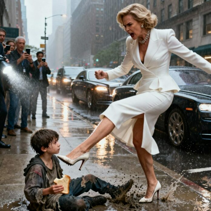 Murmullos de conmoción recorrieron la multitud. Las cámaras dispararon. Isabella Reed, ícono de la moda y filántropa, fue grabada empujando a un niño sin hogar.