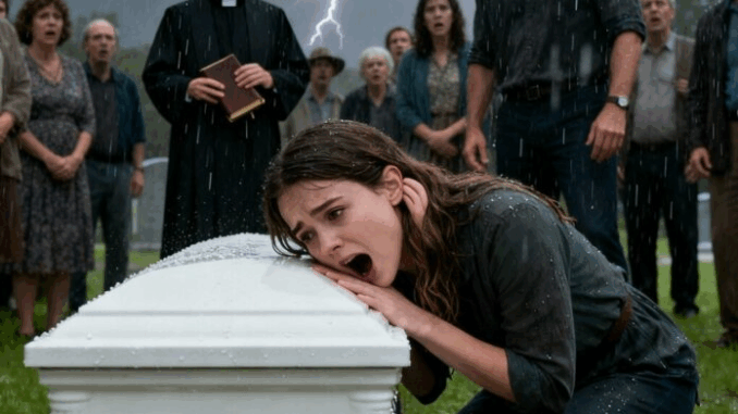 Y entonces, justo cuando el ataúd comenzó a descender a la tierra, algo débil, algo imposible, llegó a sus oídos.