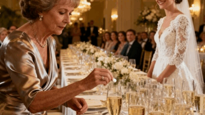 Tras la ceremonia, el salón de recepción bullía de música y conversación. Emma observaba a Ethan reír con sus amigos, con el brazo sobre su nueva suegra, Caroline, cuya sonrisa perfecta no llegaba a sus ojos. Entonces notó un movimiento sutil: la mano de Caroline se cernía sobre su copa de champán mientras se inclinaba sobre la mesa principal. Emma se quedó paralizada. Tres segundos, un instante fugaz, aparentemente insignificante, pero Emma lo captó. Le habían echado algo en la copa.