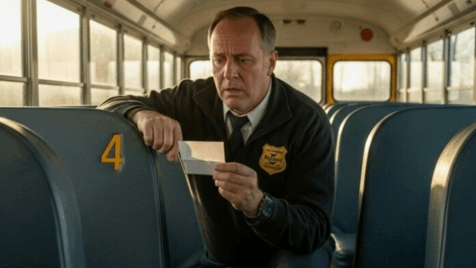 La cuarta mañana, la preocupación de Richard se volvió insoportable. Después de que Emily se bajara en la escuela, se quedó un rato en el asiento del conductor, mirando el pasillo ahora vacío. Algo lo impulsó a revisar su lugar. Al agacharse, notó un trozo de papel doblado encajado bajo el marco del asiento.