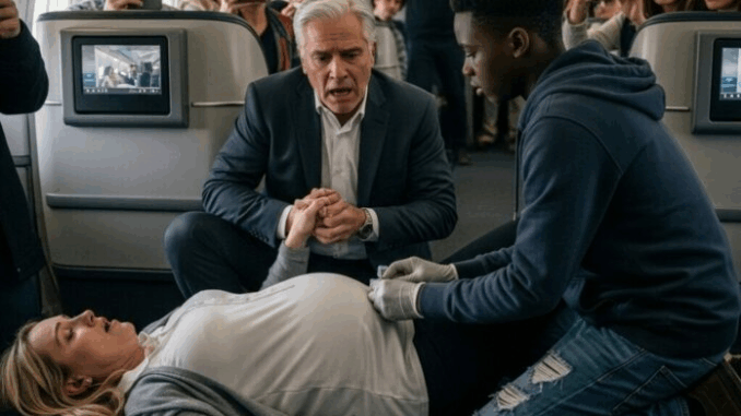 Los Harrington habían abordado el vuelo con estilo: Richard, un adinerado financiero de casi cincuenta años, y Catherine, su elegante esposa, radiante a pesar de estar embarazada de siete meses. Estaban acostumbrados a las comodidades de primera clase, con azafatas pendientes de cada solicitud. Pero ahora el lujo no importaba. Los labios de Catherine se habían puesto azules. Su pecho subía y bajaba con dificultad.
