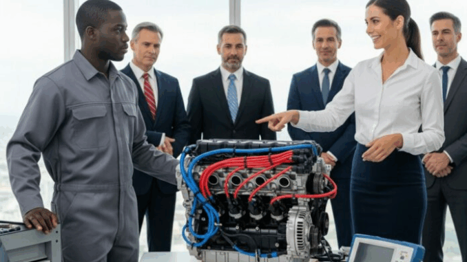 La sonrisa de Victoria se desvaneció. La risa se apagó. Decenas de ingenieros atónitos se giraron para mirar a Jamal, quien se secó las manos en el uniforme y dijo con calma: «No fue complicado. Solo había que respetar los detalles».