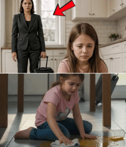 Regresar de mi viaje un día antes debería haber sido una grata sorpresa. Pero esa noche, al cruzar la puerta, encontré a mi hija de nueve años a gatas sobre las baldosas, fregando el suelo de la cocina. Sola. Sus bracitos se frotaban con una concentración febril, como si intentara “hacerlo bien”.
