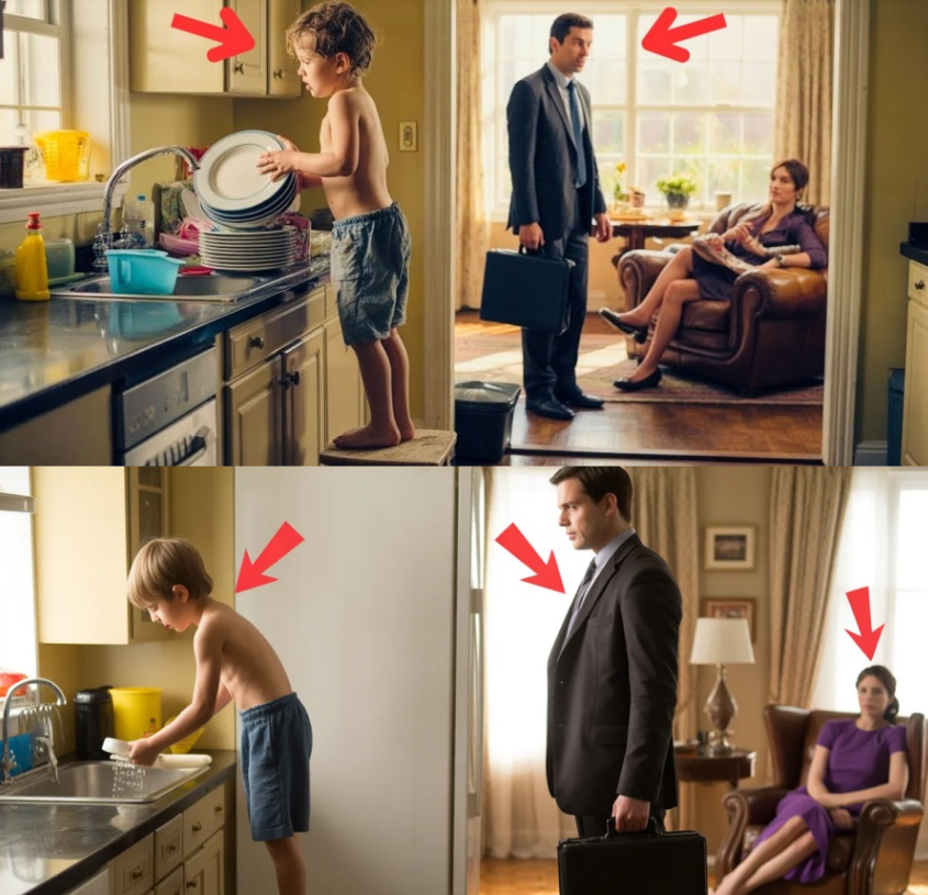 Eran las 4 de la tarde de un jueves. La puerta principal estaba abierta, y lo primero que oyó fue el sonido del agua corriendo y sollozos ahogados. Siguió el sonido hasta la cocina, y lo que vio le paralizó el corazón. Su hijo de 7 años, Daniel, estaba de pie frente al fregadero, lavando una montaña de platos sucios.