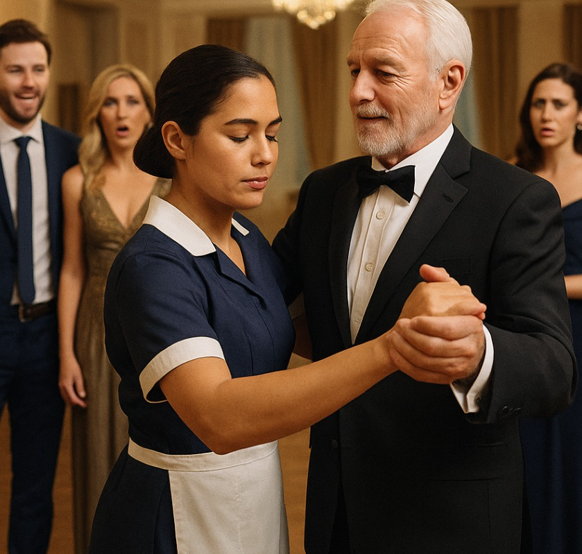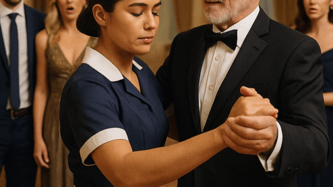 María puso una mano sobre el hombro del millonario y la otra en la suya, y se movió con una elegancia inesperada. Sus pasos eran firmes, suaves, perfectamente sincronizados con el ritmo. La orquesta tocaba un vals clásico, y el sonido de los violines parecía envolverlos como un hechizo.