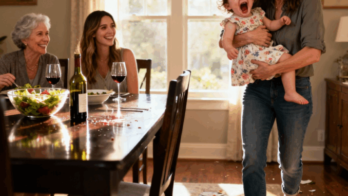 Me senté tranquilamente junto a mi hija de tres años, Emma, ​​ayudándola a cortar pequeños bocados de comida. Se había portado de maravilla toda la noche, balanceando las piernas bajo la silla e intentando participar en la conversación en la que nadie se molestaba en incluirla.