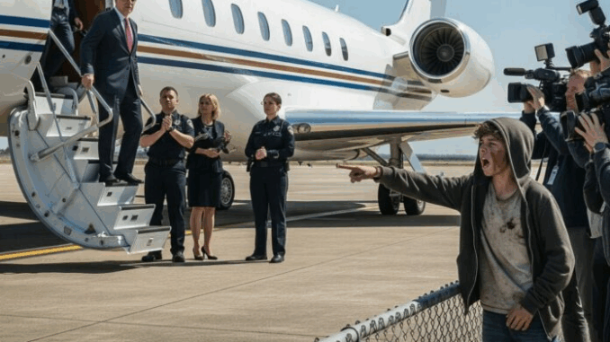 Las palabras cortaron el aire frío como una cuchilla. Todos se quedaron paralizados. Las cabezas se giraron hacia la valla metálica cerca del borde de la pista. Un niño estaba allí, de no más de doce años, con la sudadera rota, los vaqueros sucios y las zapatillas rotas por la puntera. Su cabello oscuro se alzaba en mechones desordenados y tenía la cara manchada de polvo. Pero sus ojos —abiertos, aterrorizados, sin pestañear— estaban fijos en Alexander.