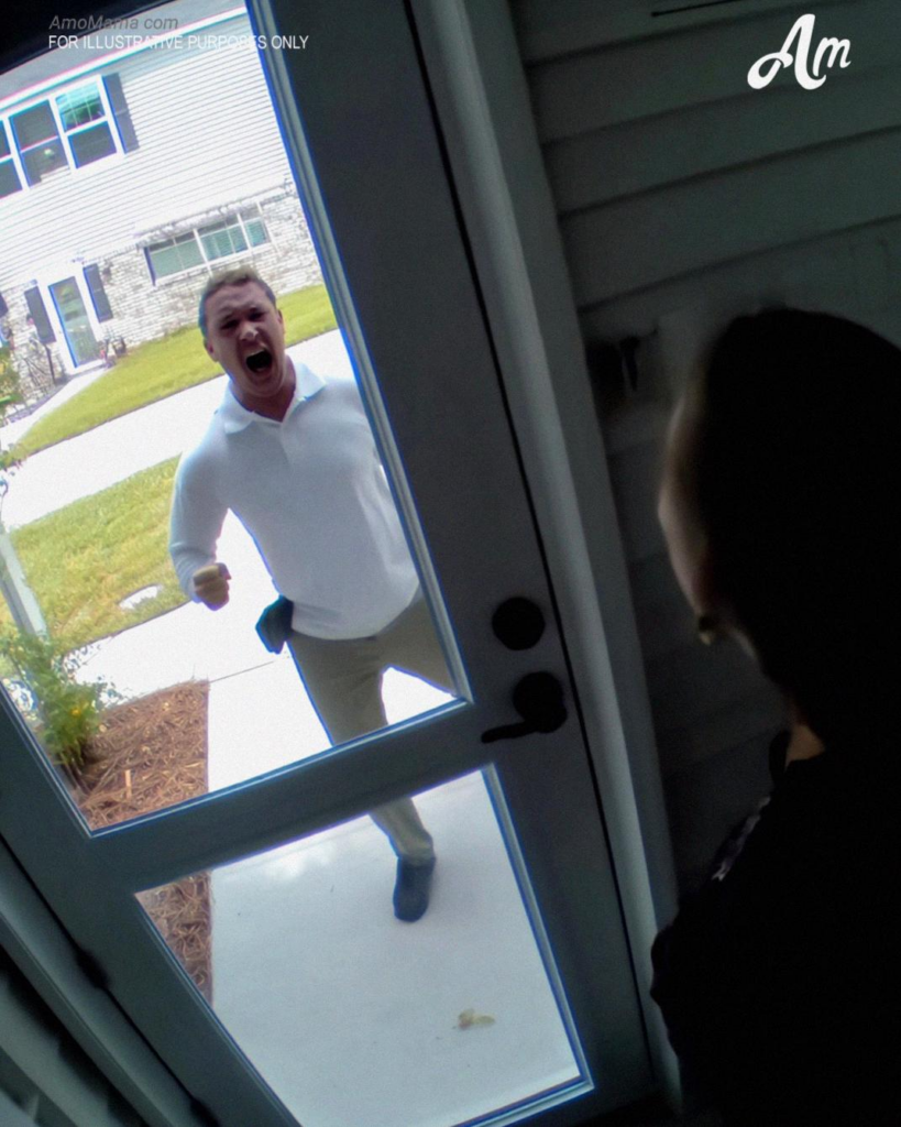 Un hombre afuera de la casa de su vecino | Fuente: Midjourney