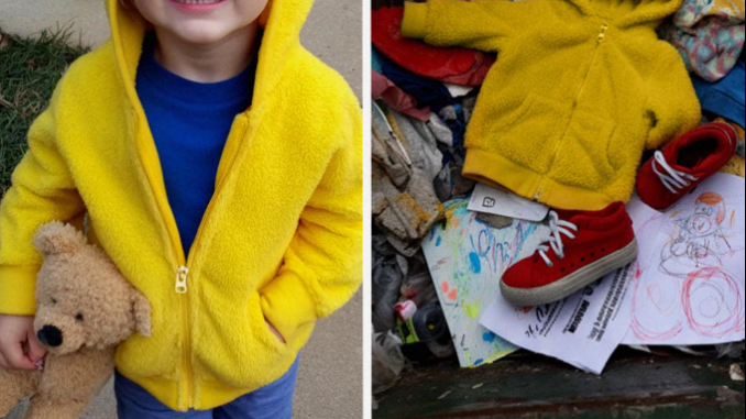 Mis manos temblaban tan fuerte que apenas podía desatar el nudo, pero cuando finalmente lo abrí, vi la sudadera con capucha de dinosaurio de Caleb manchada con posos de café y cáscaras de plátano, sus pequeñas zapatillas enredadas con pañuelos usados y sus dibujos de superhéroes arrugados como papel sin valor.
