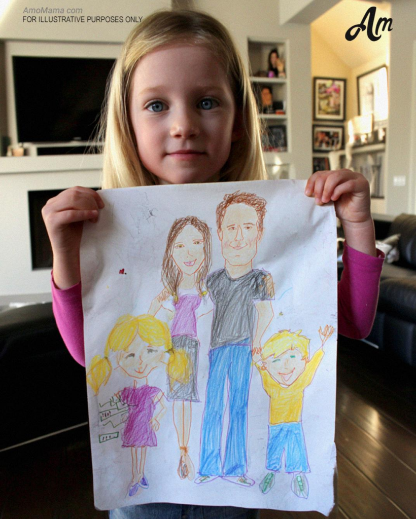“¡Mira, mami!”, dijo radiante. “¡Dibujé a nuestra familia!”