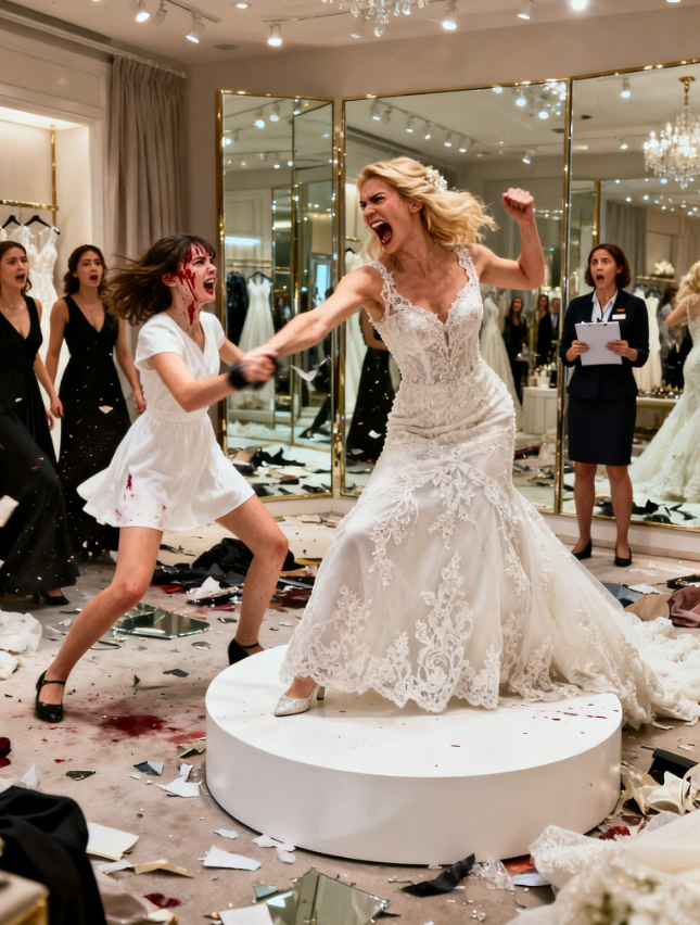 Mi hermana, Melissa, se alzaba en el pequeño pedestal como una reina en un imperio de encaje. El vestido era impresionante: seda blanca y apliques de cuentas hechas a mano, el tipo de vestido que parecía menos de “boda” y más de “pieza de museo”. Había una cola que se acumulaba tras ella como un copo de nieve. El asesor había dicho que costaba poco más de veinte mil dólares, y yo asentí como si fuera algo normal decirlo en voz alta.