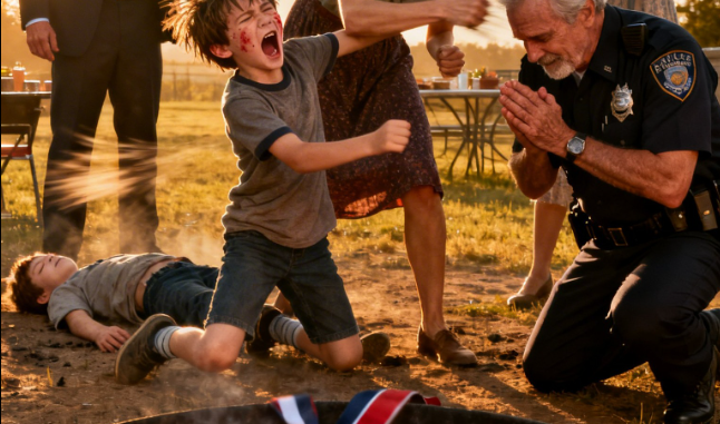 Liam salió corriendo del patio, con el rostro enrojecido y los ojos desorbitados por el pánico. Se detuvo cerca de la hoguera, señalando a Sarah con la justa indignación propia de un niño.