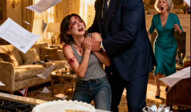 La voz de mi padre se abrió paso entre el bullicio de las decoraciones de cumpleaños y los globos medio desinflados. Acababa de entrar en el salón, todavía con un regalo envuelto en la mano, con la mirada fija en mi mejilla hinchada y la leve marca morada cerca de mi mandíbula. La habitación quedó en silencio.